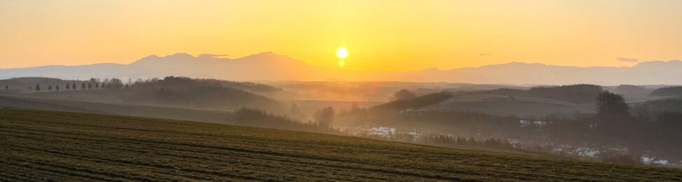 日の出の光と朝靄が幻想的です。コンフォートハウスから車で5分の場所で撮影しました。